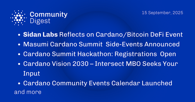 [ad_1] In this edition of the Community Digest, we spotlight Sidan Labs’ reflections on the Bitcoin x Cardano event in
