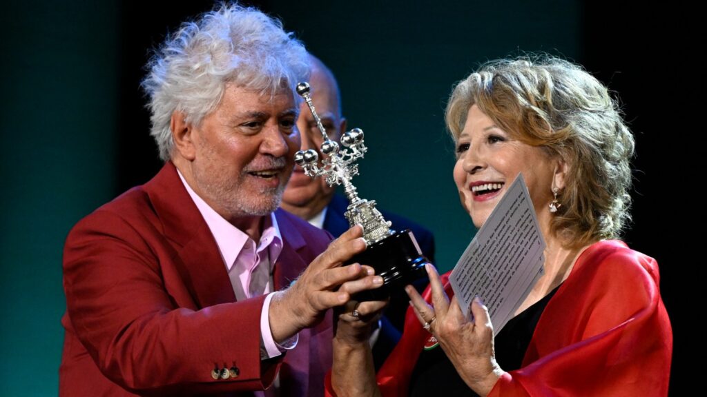 Before the screening, brothers Pedro and Agustín Almodóvar honored Esther García with San Sebastian’s prestigious Donostia Award. The producer, who lifted her award to raucous applause inside the venue, is considered one of the most influential women in Spanish cinema having worked on Almodóvar’s films since 1986.